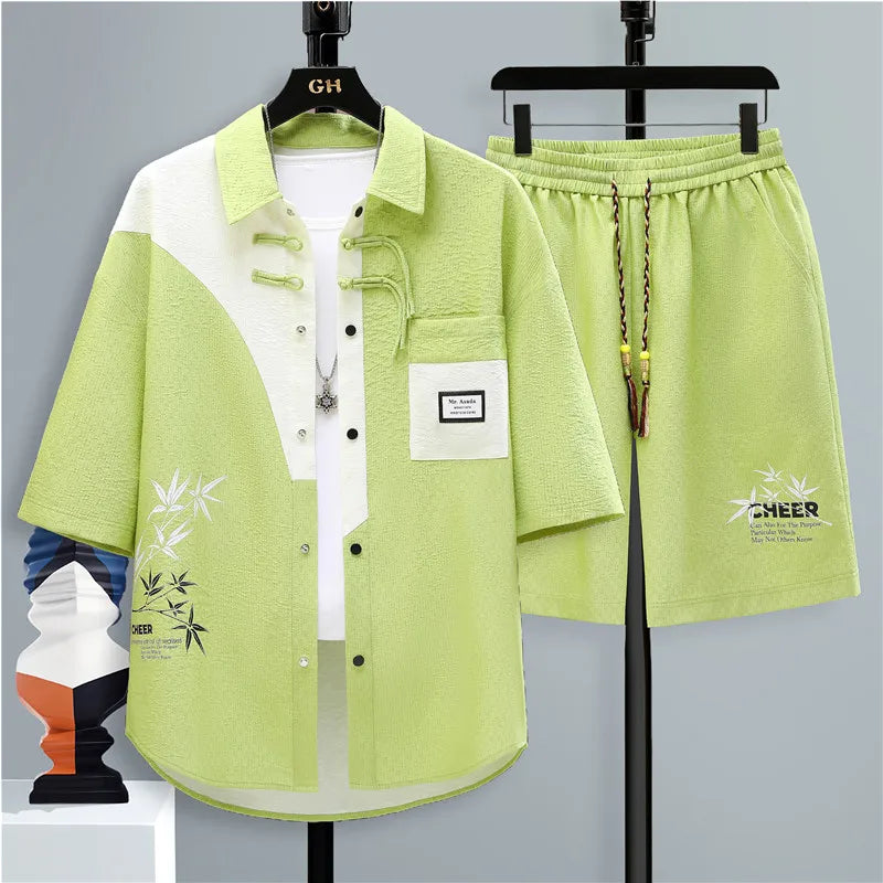 Summer fashion 2 Pieces Set Tracksuit Men's Two Piece Shirt Shorts Harajuku Streetwear Oversized Men Sets Short Sportswear Suits