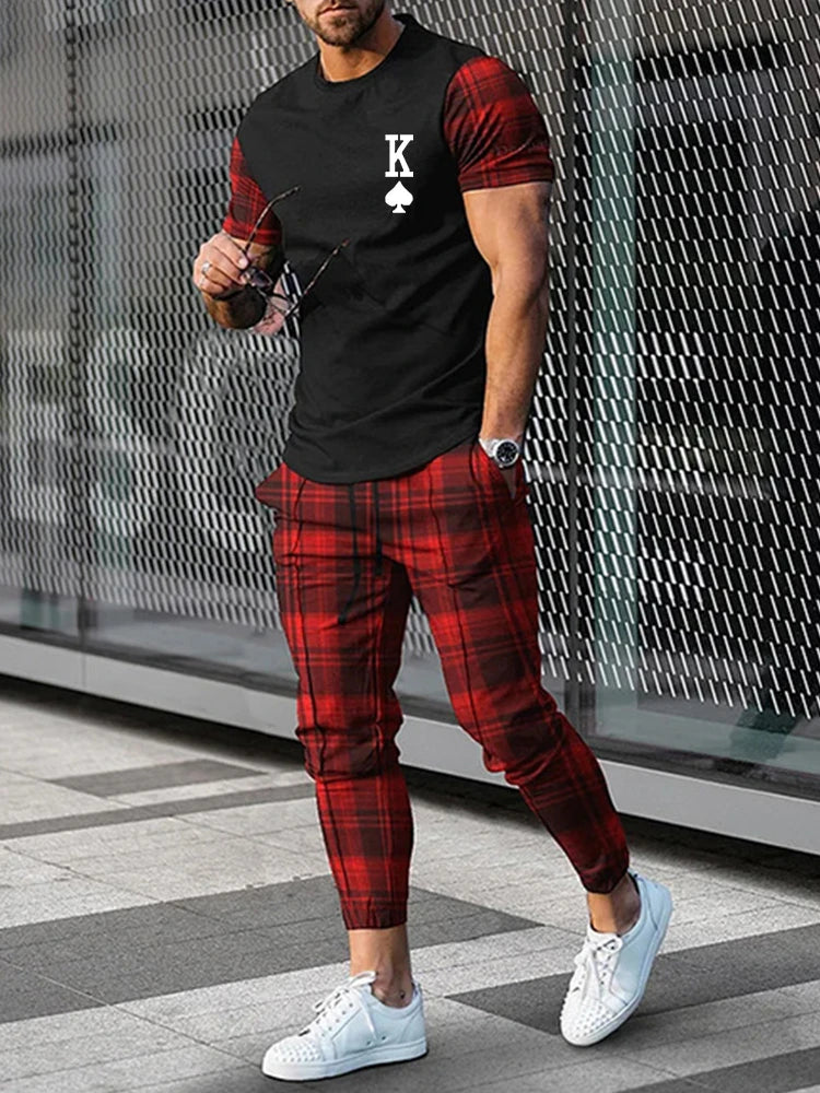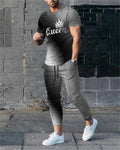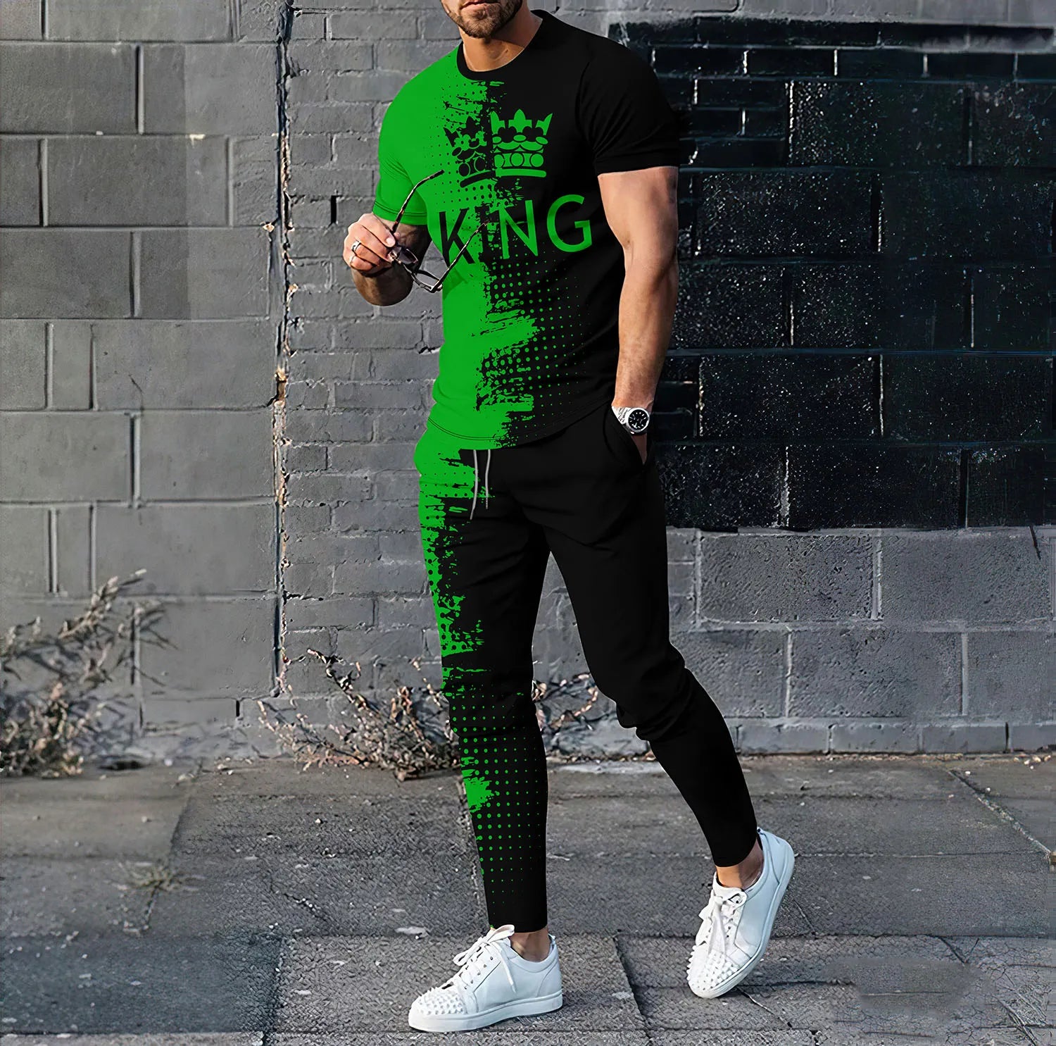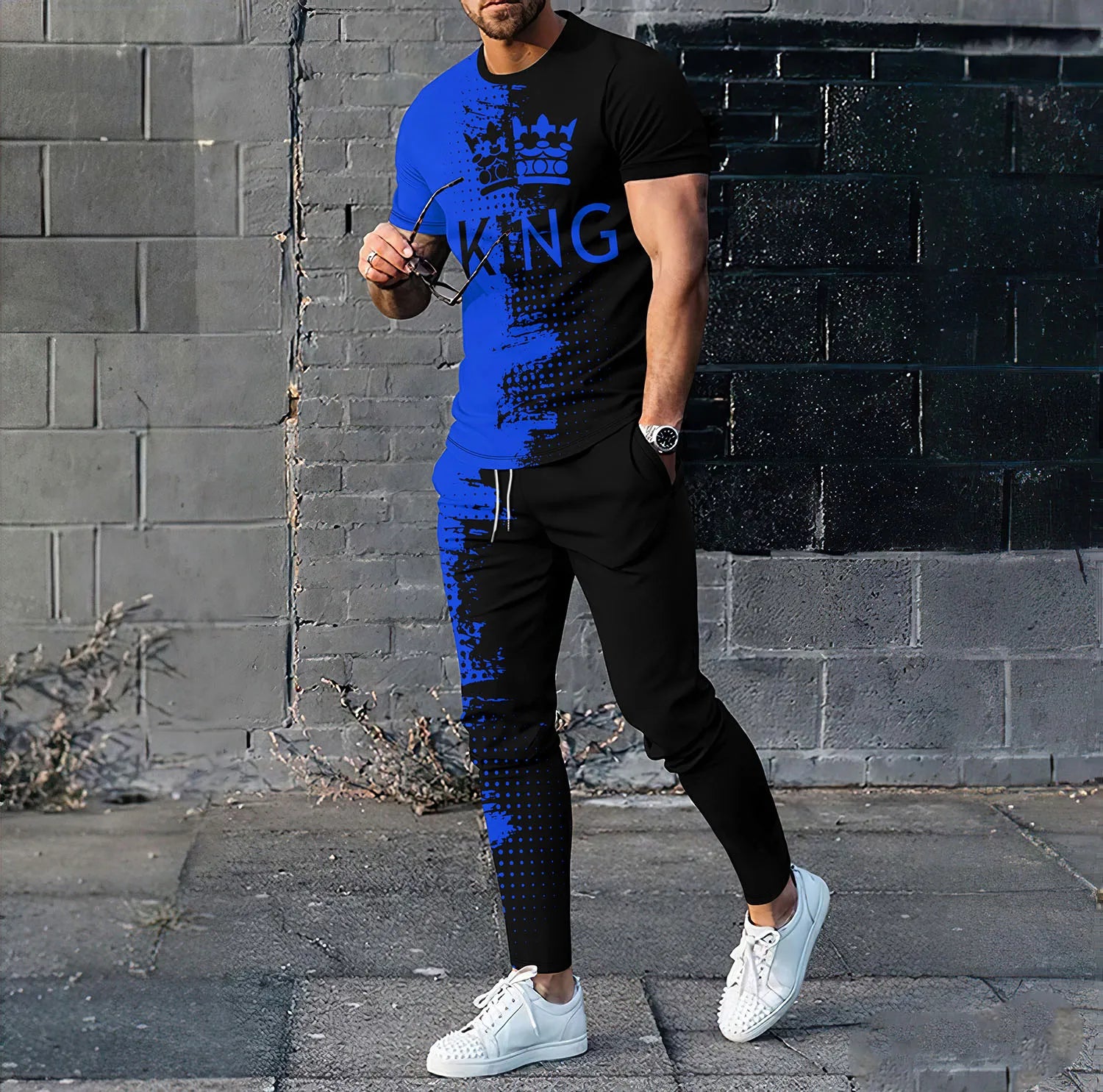 Summer Fashion King 3D Print Men Sportswear Set Casual Short-Sleeved T Shirt Pants 2-Piece Set Oversized Pullover Men Clothing