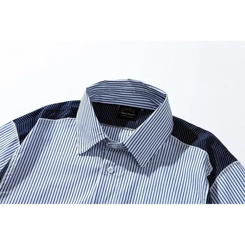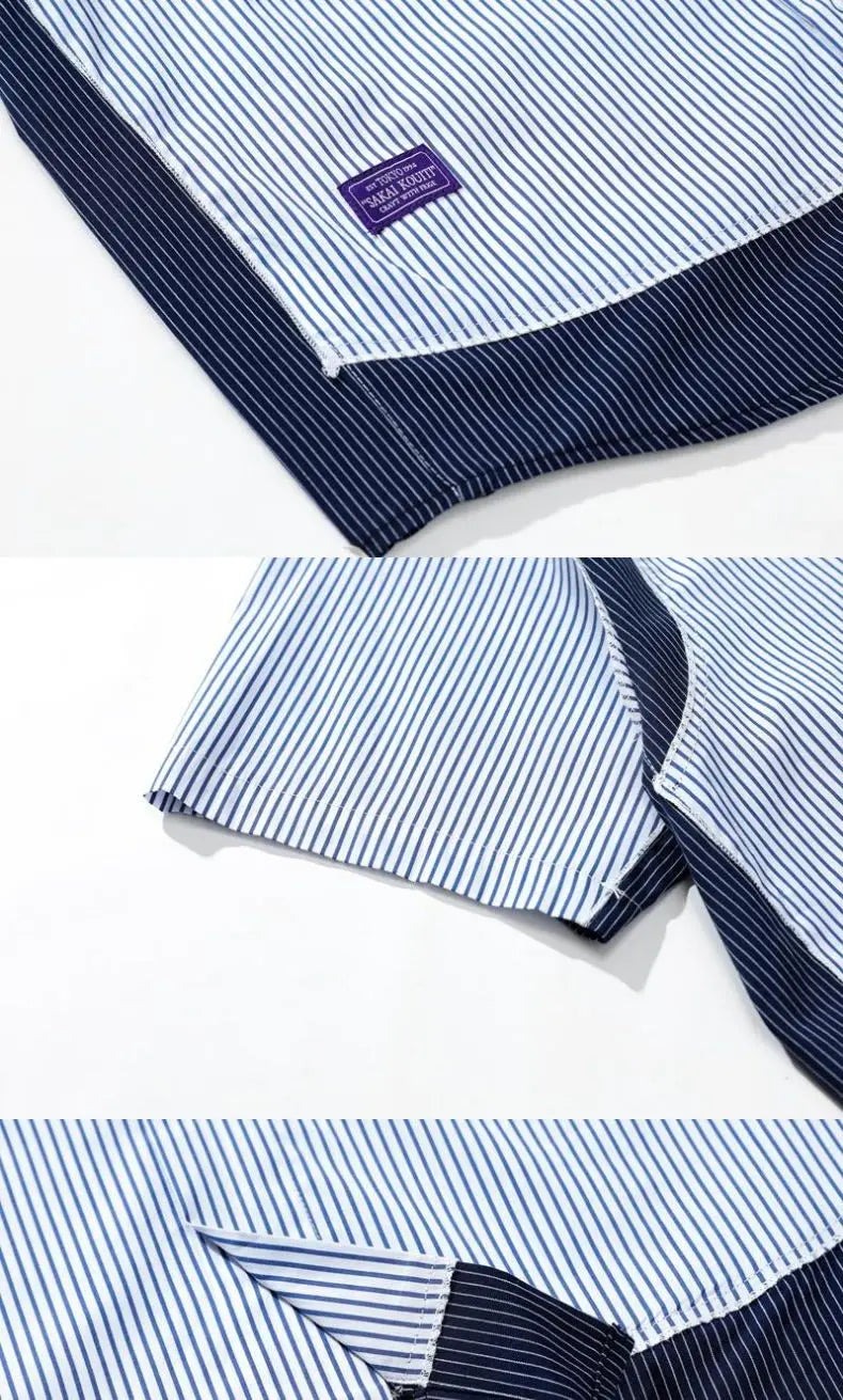 Summer Japanese Striped Short-sleeved Shirt Men's Contrasting Color Loose Splicing Fake Two-piece Jacket