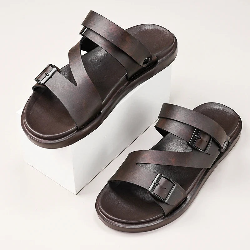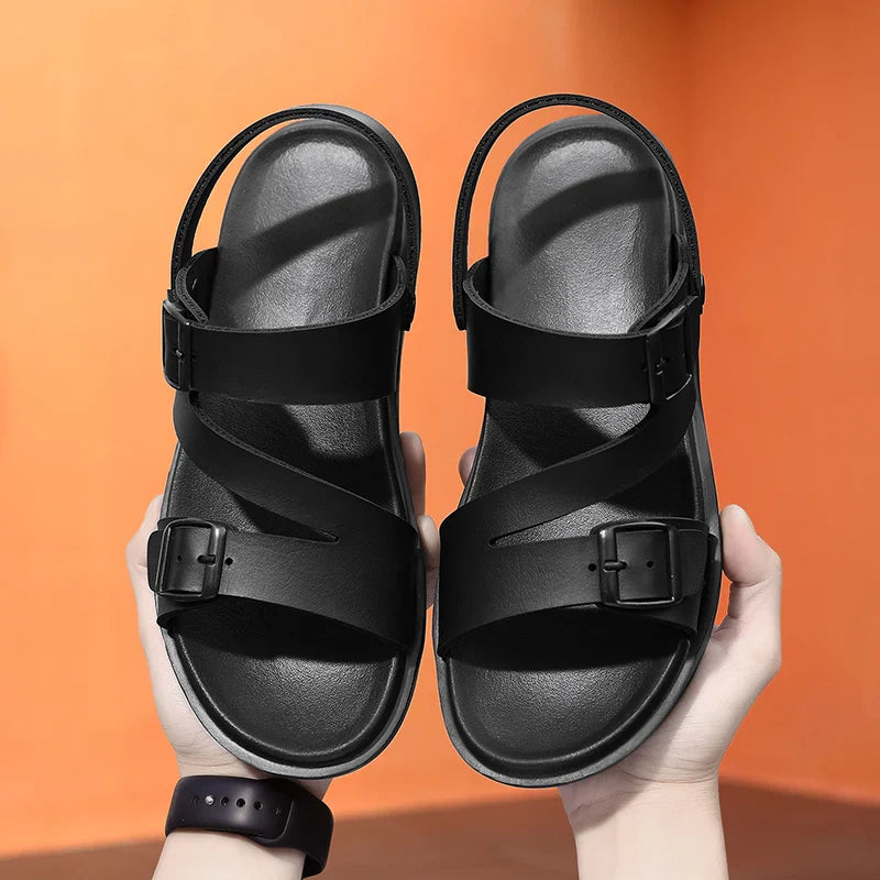 Summer Men Sandals PU Leather Mens Casual Shoes Outdoor Men Leather Sandals for Men Beach Shoes Roman Mens Shoes