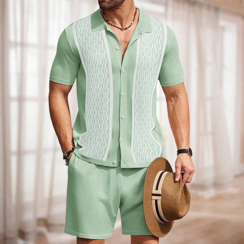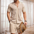 Summer Men's Clothing Luxury Knit Tracksuit Set Leisure Short Sleeve Solid Color Shirts+Shorts 2 Piece Popular Knitwear Suit