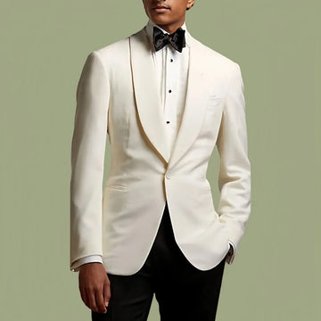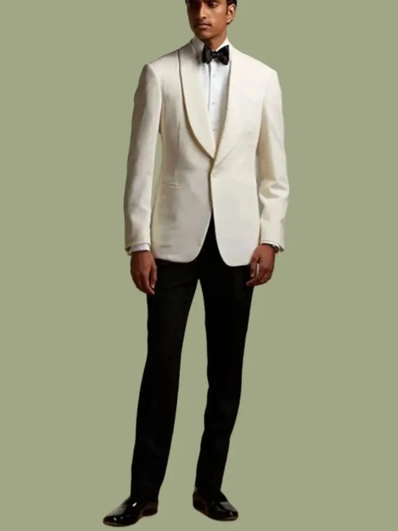 Tailor-made slim fit Men Suits ivory Blazer Classic Design Shawl Lapel Jacket black Pants terno masculino wedding Groom suits