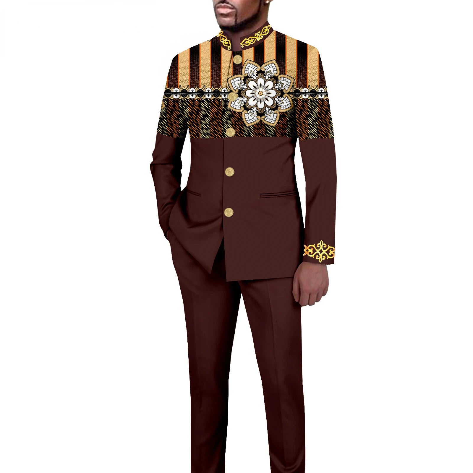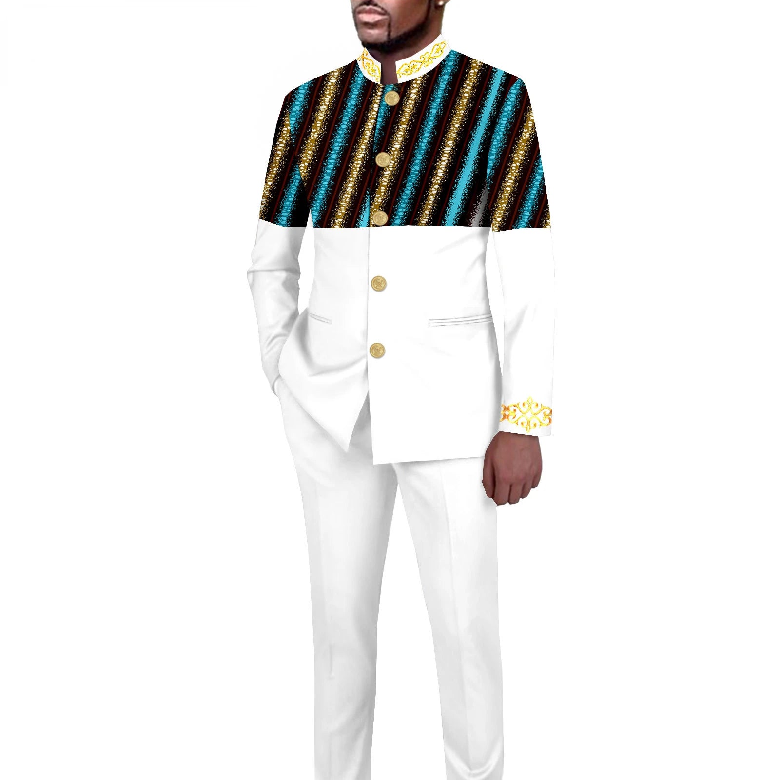 Tailored Men's Suit Solid Color Single Breasted Stand Collar Long Blazer African Style 2 Piece Jacket Trousers Mens Clothes Men