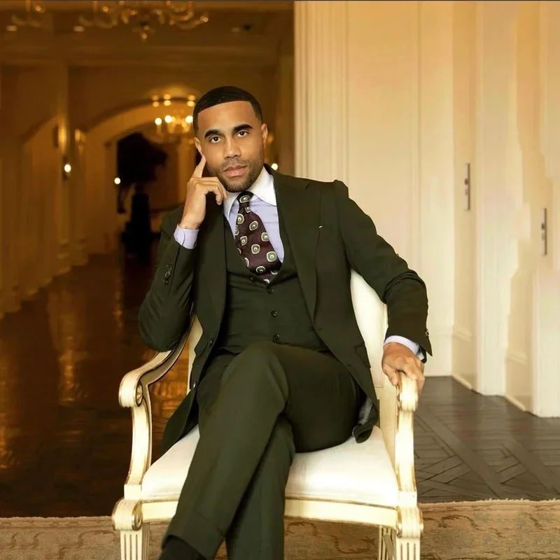 three-piece Stylish olive green men's suit Business suit Groom's tuxedo jacket Vest pants