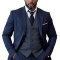 Tibetan Blue Stripe Men Suit Single-breasted Peak Lapel 3 Pieces(Jacket+Pants+Vest) Male Formal Wedding Party Set