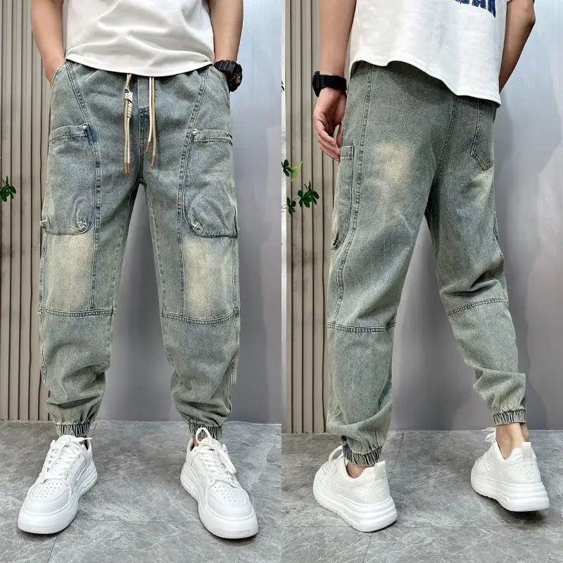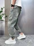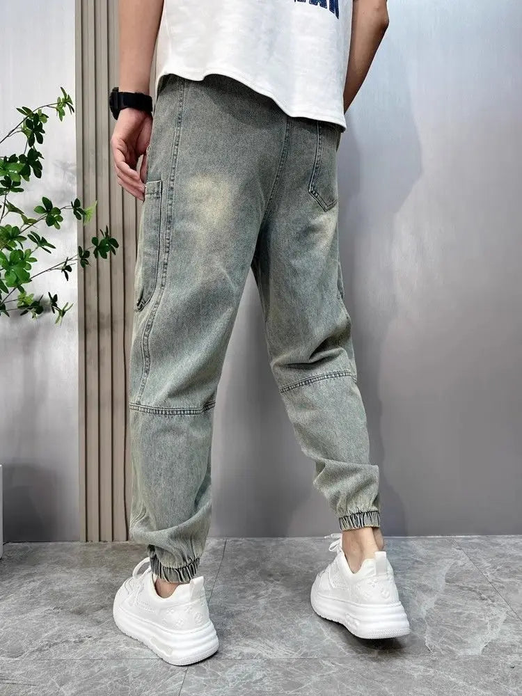 Trendy Loose Harem Pants Elastic Waist Stylish Cropped Jeans Men's Spring Autumn New Arrival
