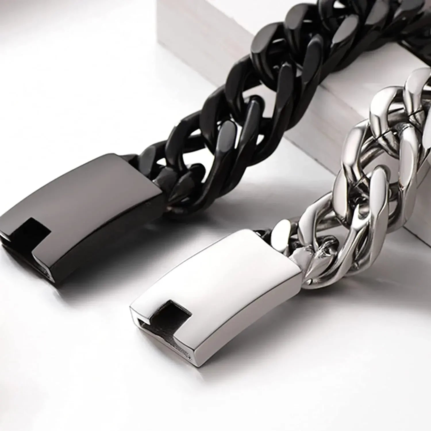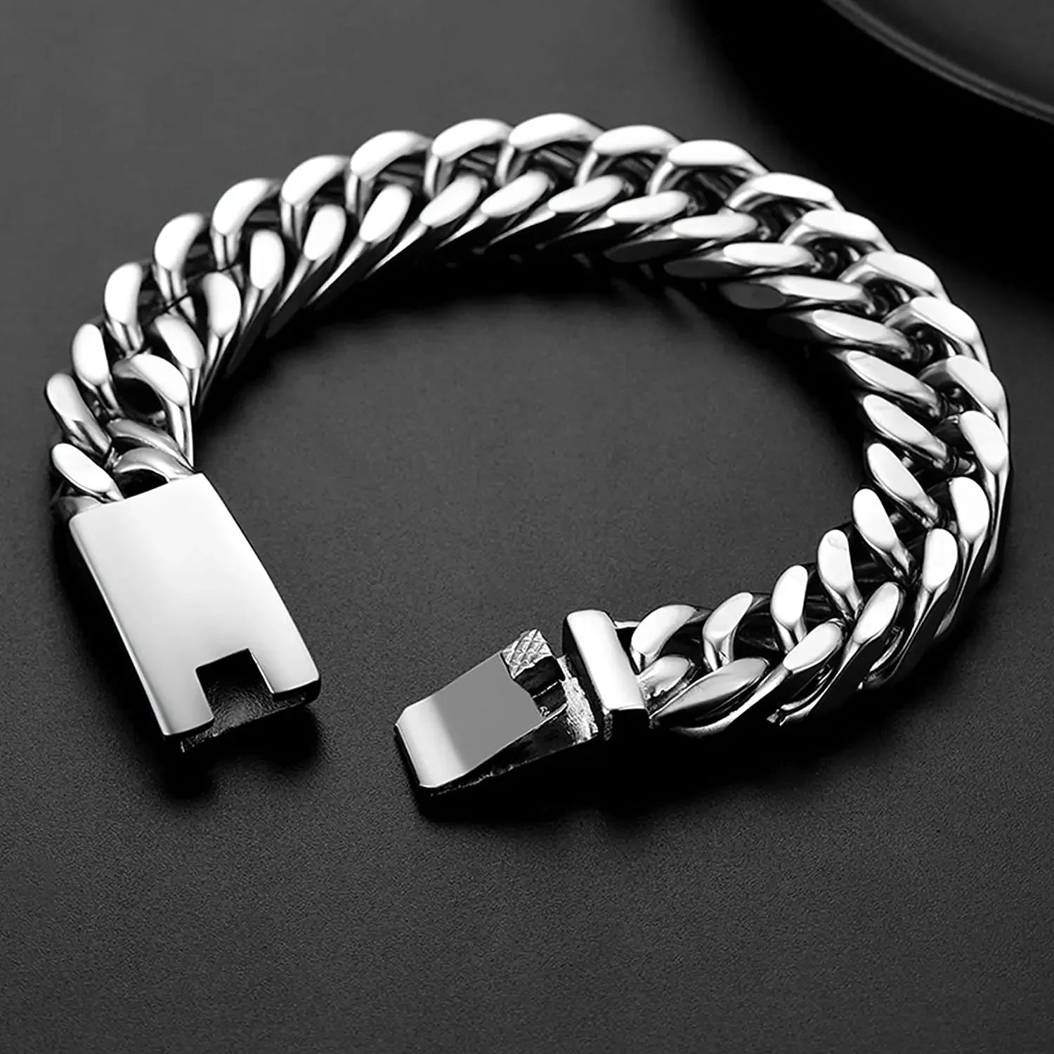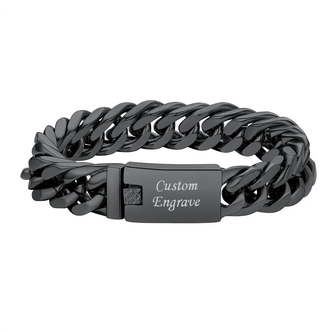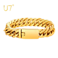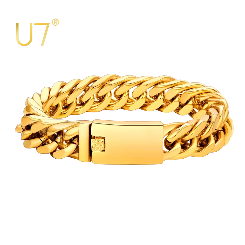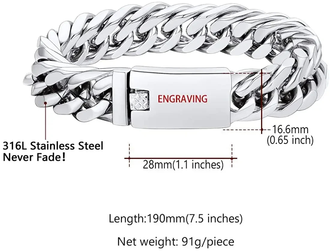 U7 Stainless Steel 16mm Wide Thick Chunky Cuban Curb Link Chain Bracelet for Man Laser Engraving Text Bar Clasp Closure Bracelet