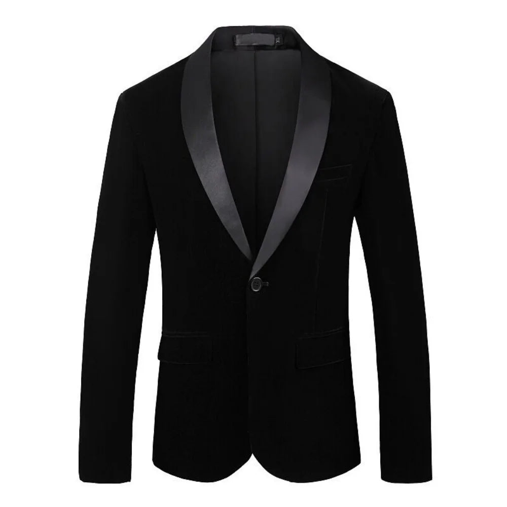 Velvet Blazer Wedding Men Black Shawl Lapel Casual Suit One Button Jacket Formal Male Fashion Party Suit Only One Coat