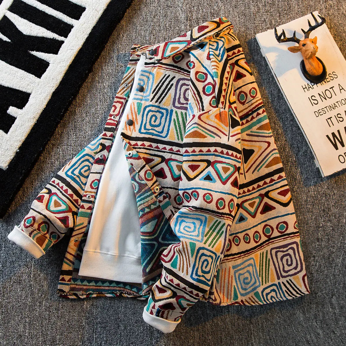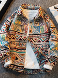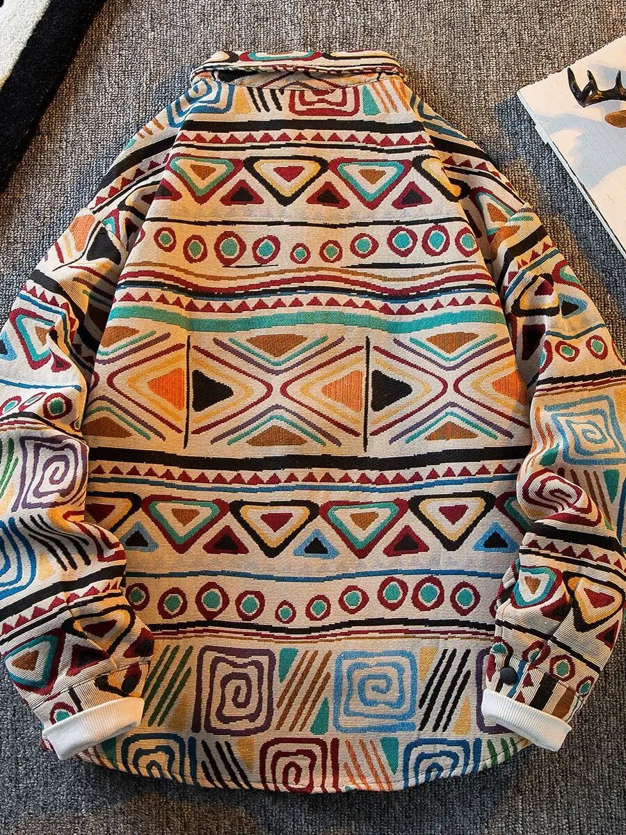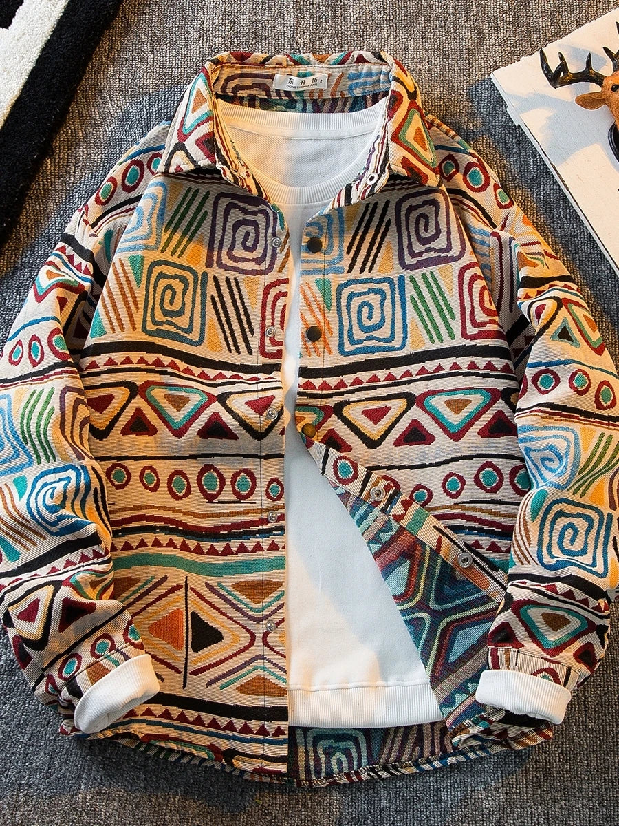 Vintage Ethnic Style Knitted Shirt Men's High-end Feeling Autumn Handsome Shirt Jacket Long Sleeved Casual Vintage Shirt Coat