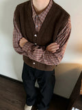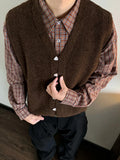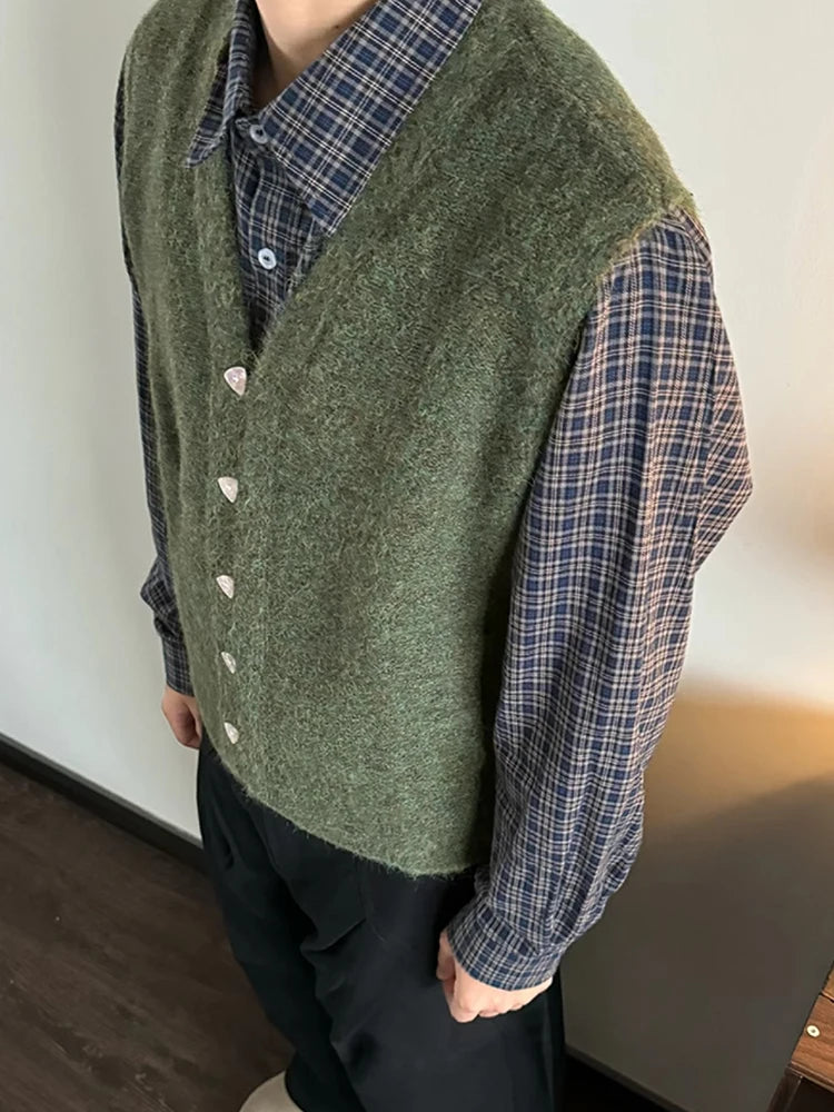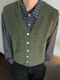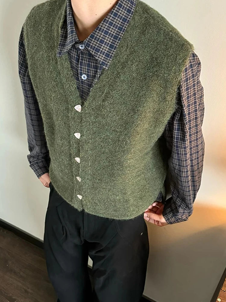 Vintage Single-breasted Wool Vest Jacket Men Autumn Winter Trendy Sleeveless Cardigans Mens New Casual V Neck Knitted Waistcoats