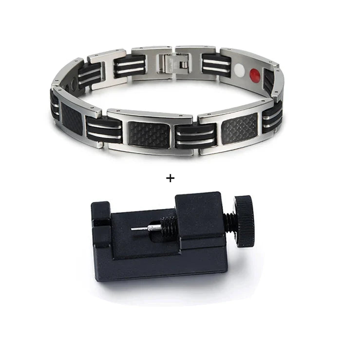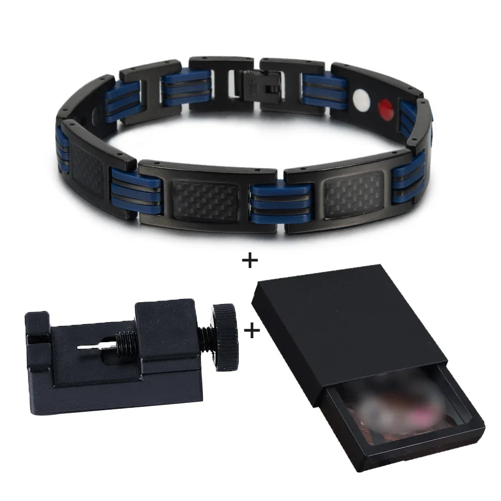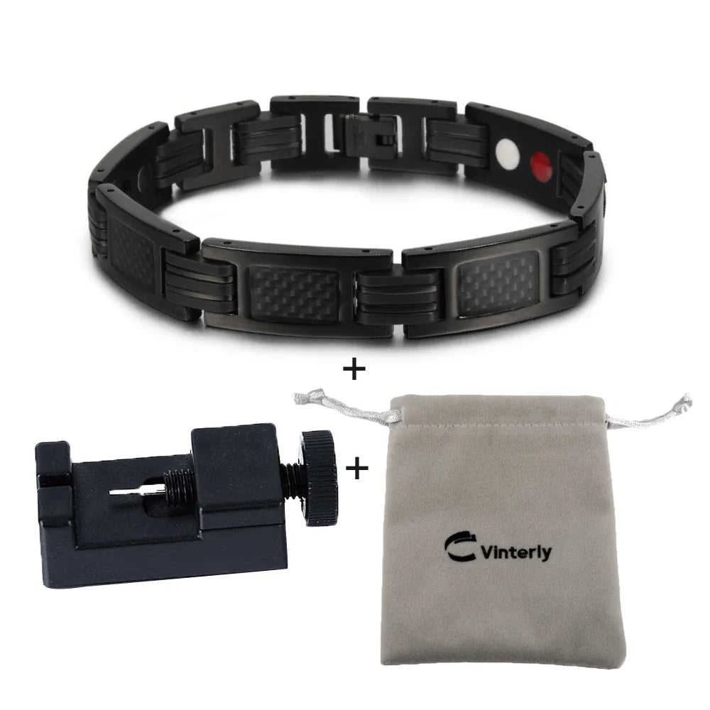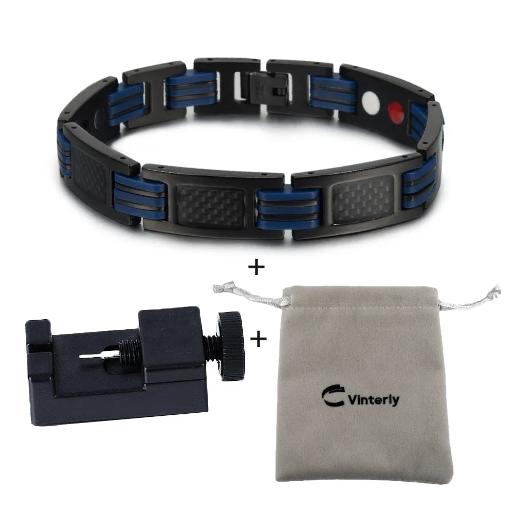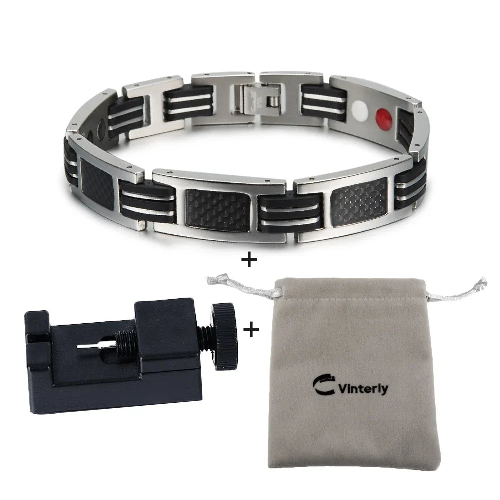 Vinterly Magnetic Bracelet Men Stainless Steel 21cm Black Carbon Fibre Silicone Energy Benefits Therapy Arthritis Jewelry