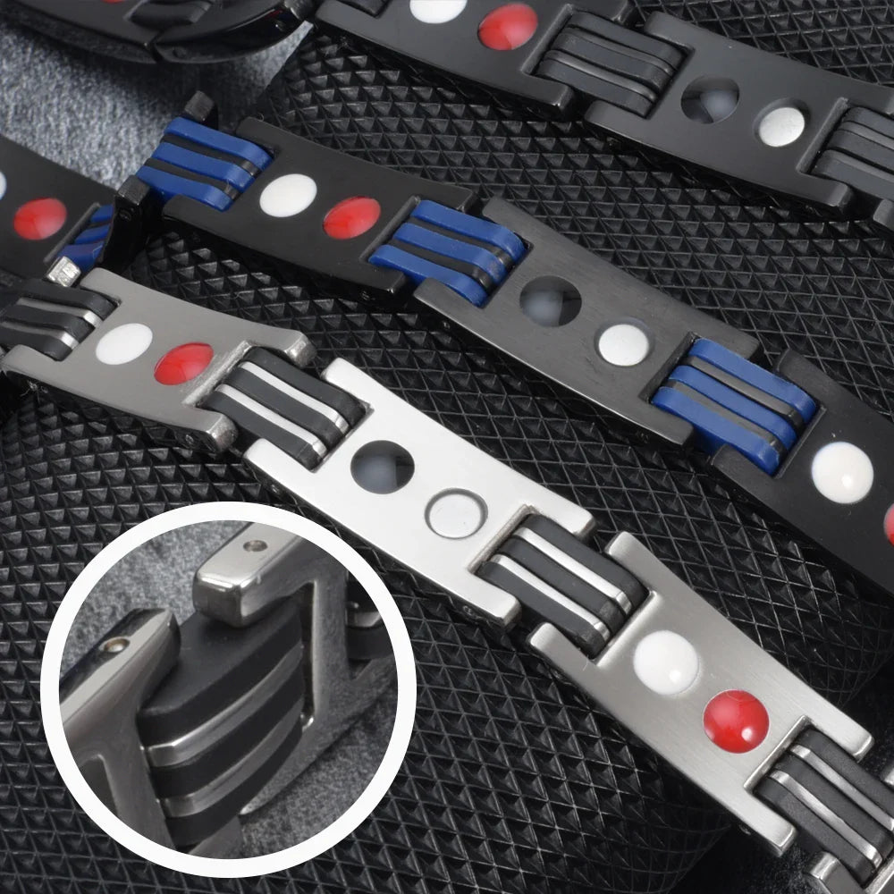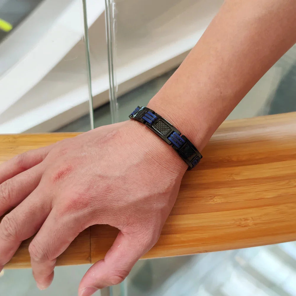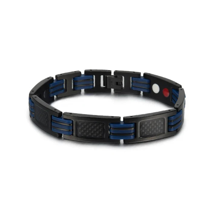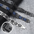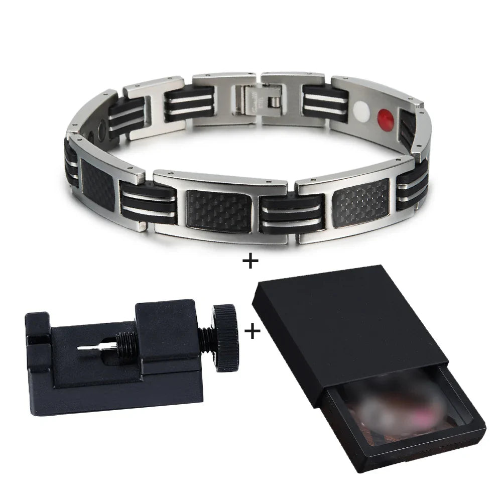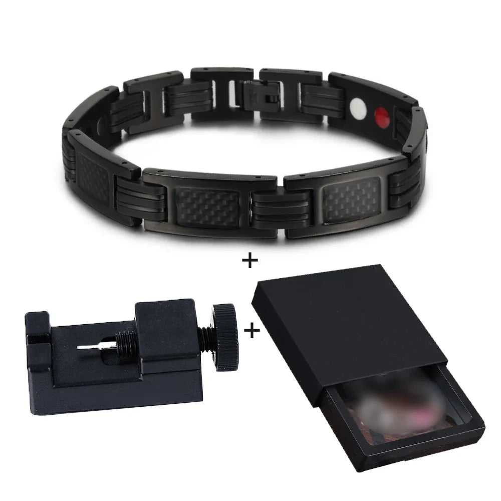 Vinterly Magnetic Bracelet Men Stainless Steel 21cm Black Carbon Fibre Silicone Energy Benefits Therapy Arthritis Jewelry
