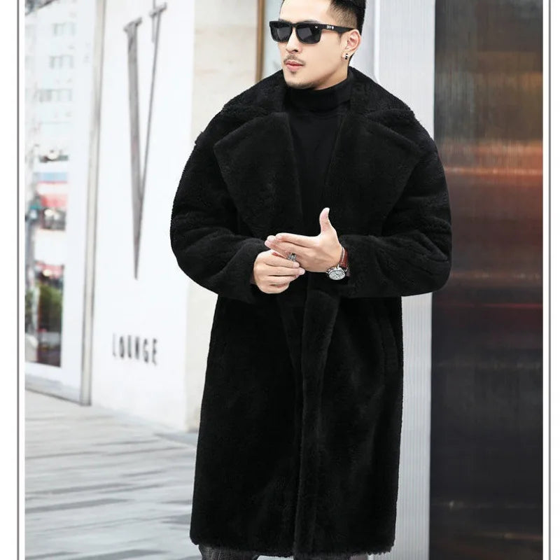 Warm Winter Men's Leather Coat 2023 New Sheep Cut Long Alpaca Coat Men's Fur Trench Coat Men Jacket Men Clothing