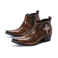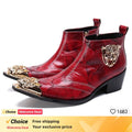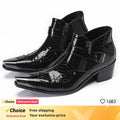 Western men's booties leather shoes pointy black red leather ankle boots men's zipper 6.5cm high heels motorcycle shoes
