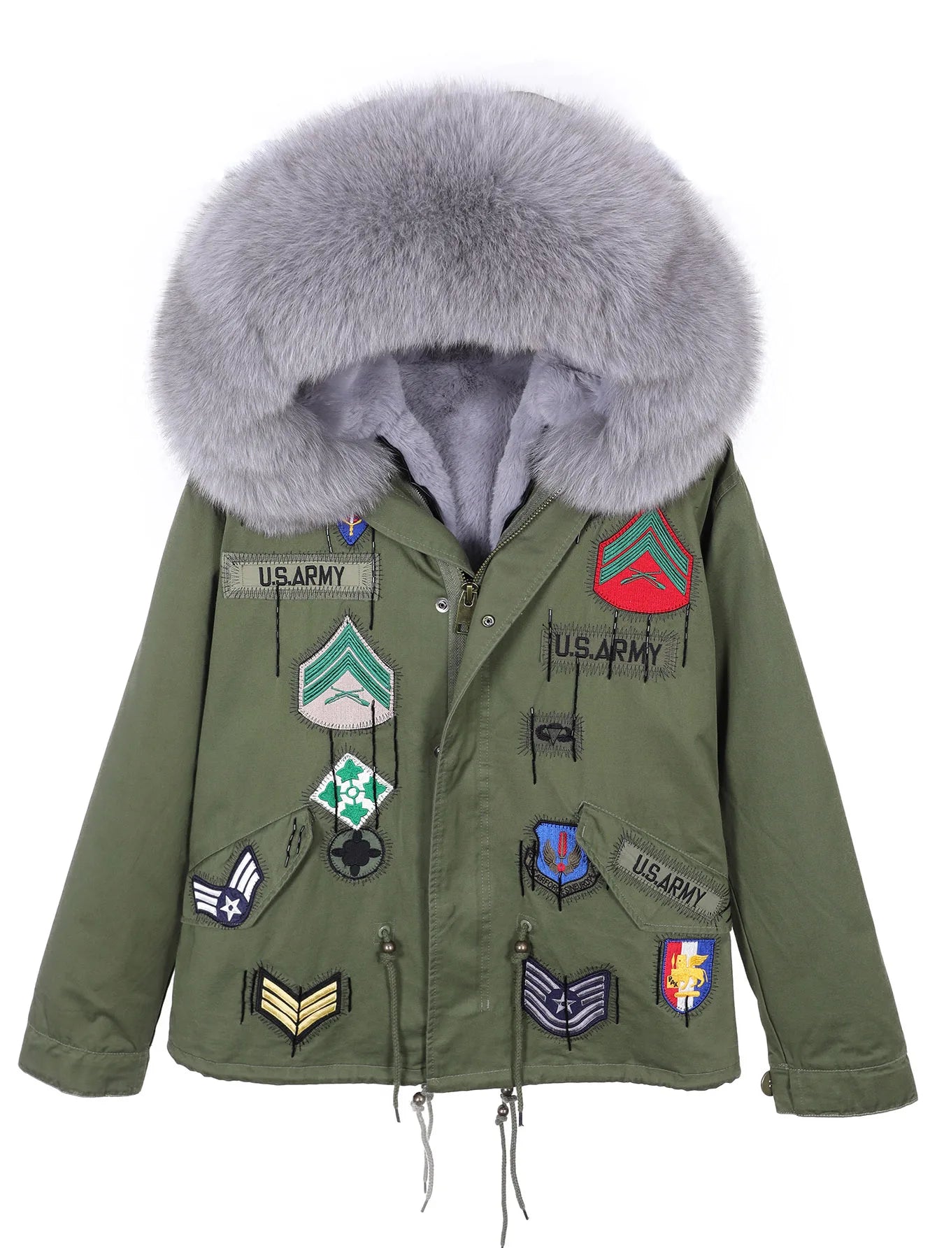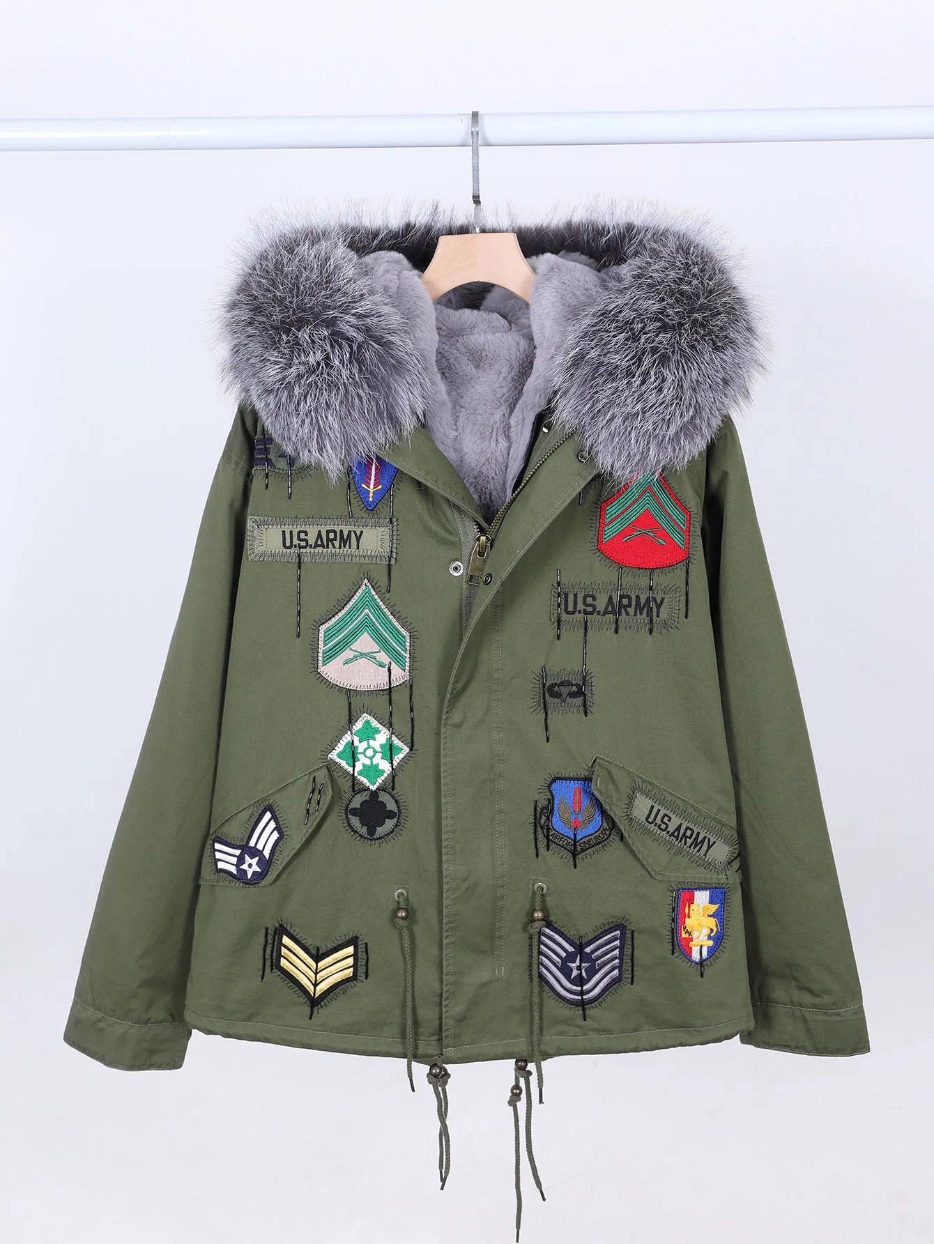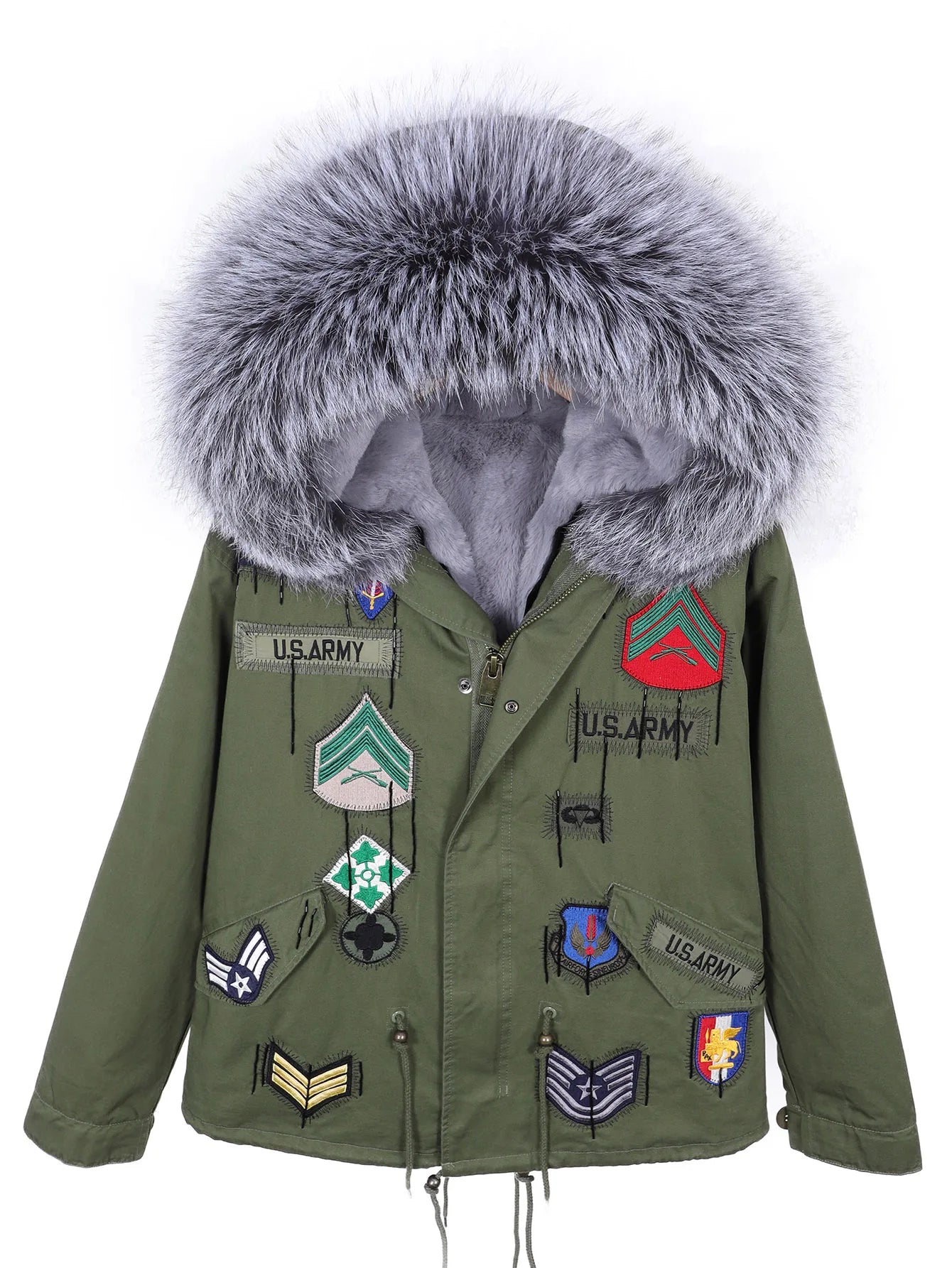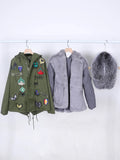 Winter Women's Embroidered Army green Parka Coat Warm Natural Fur Collar Women's Jacket Outerwear