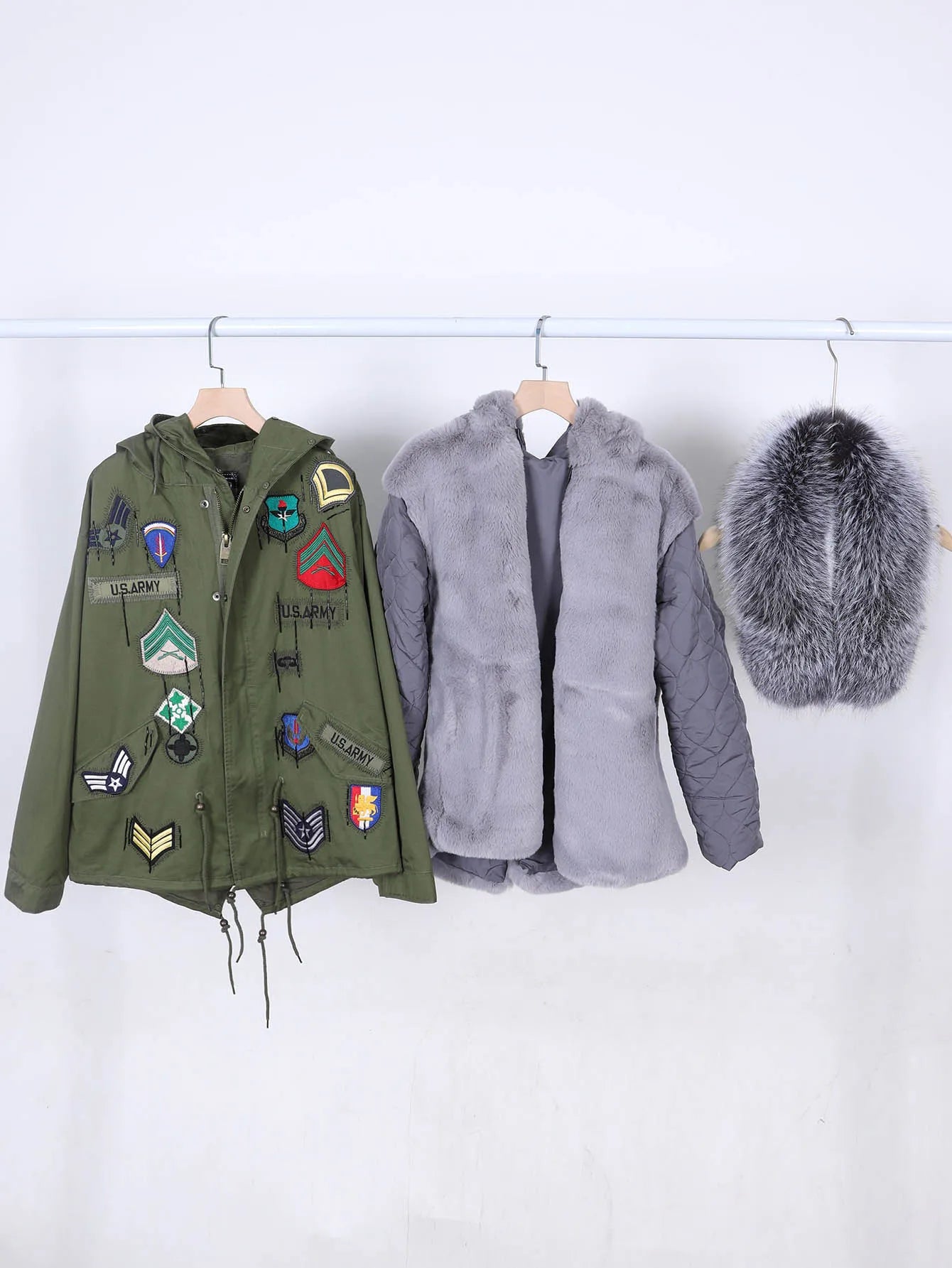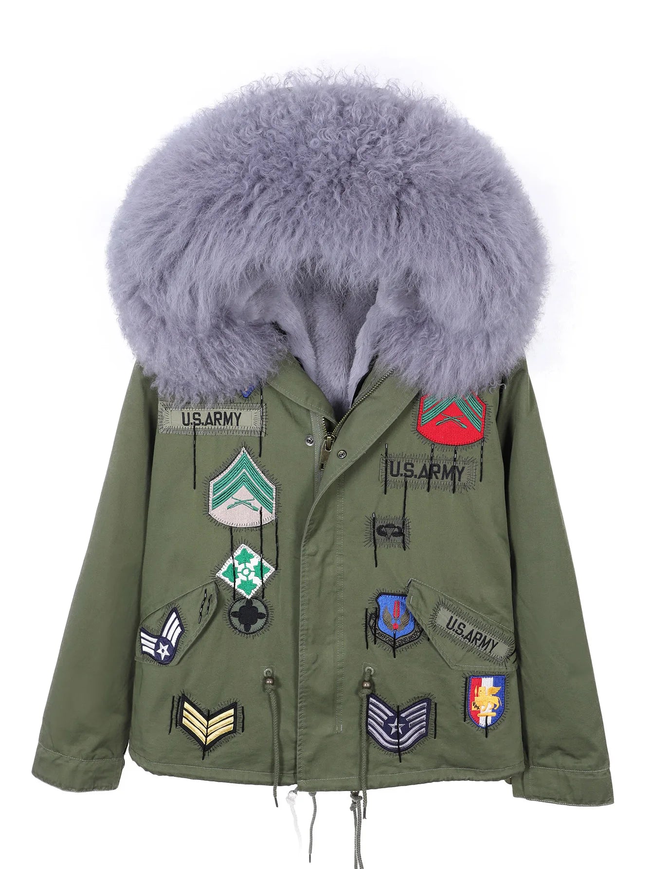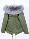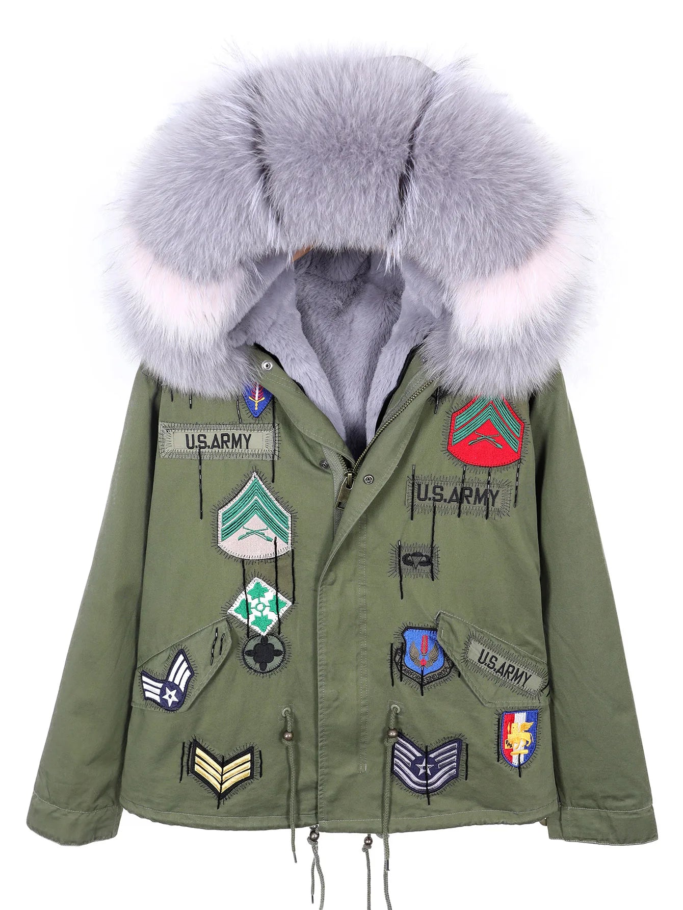 Winter Women's Embroidered Army green Parka Coat Warm Natural Fur Collar Women's Jacket Outerwear