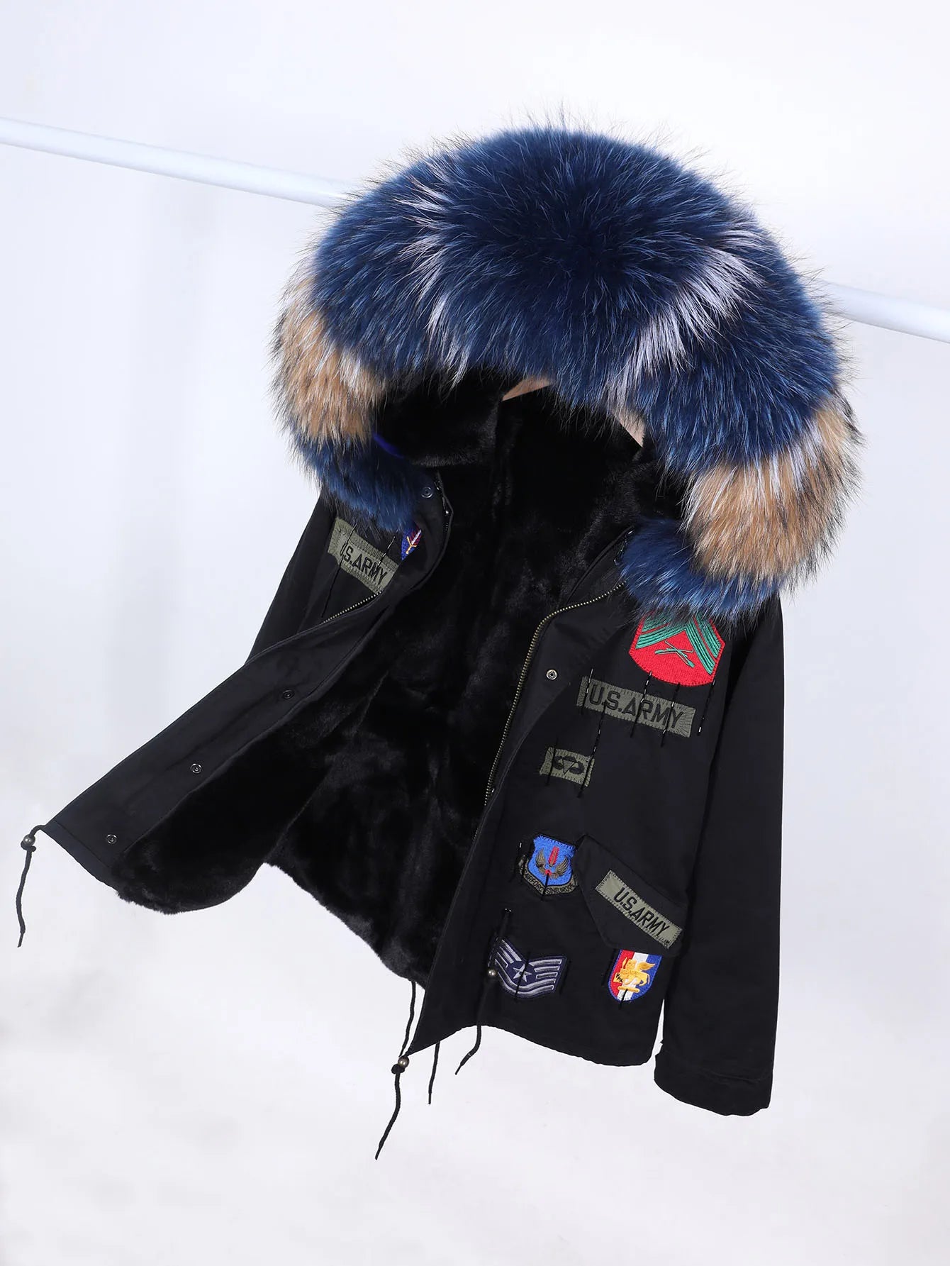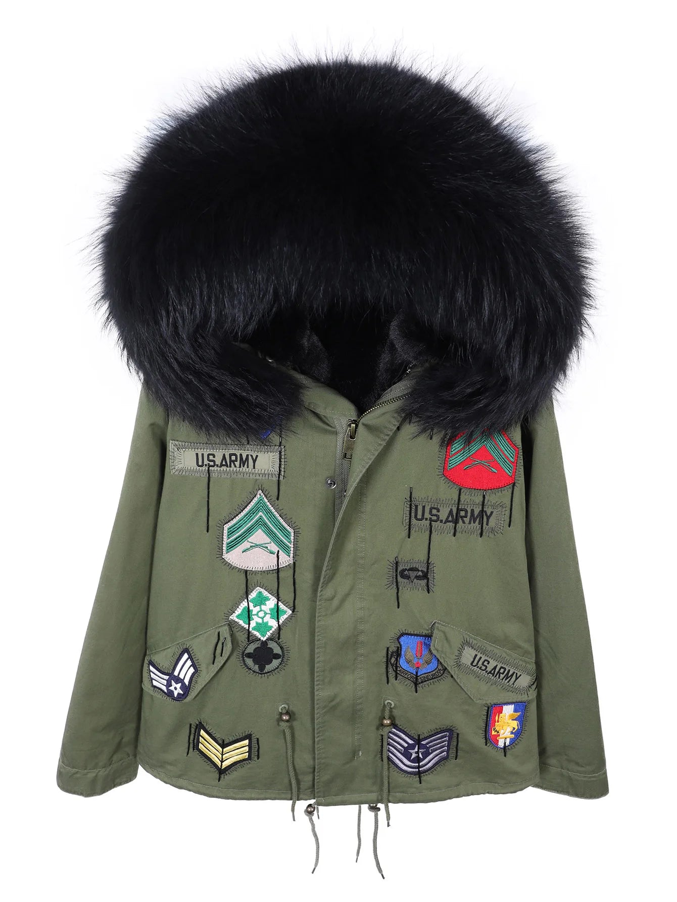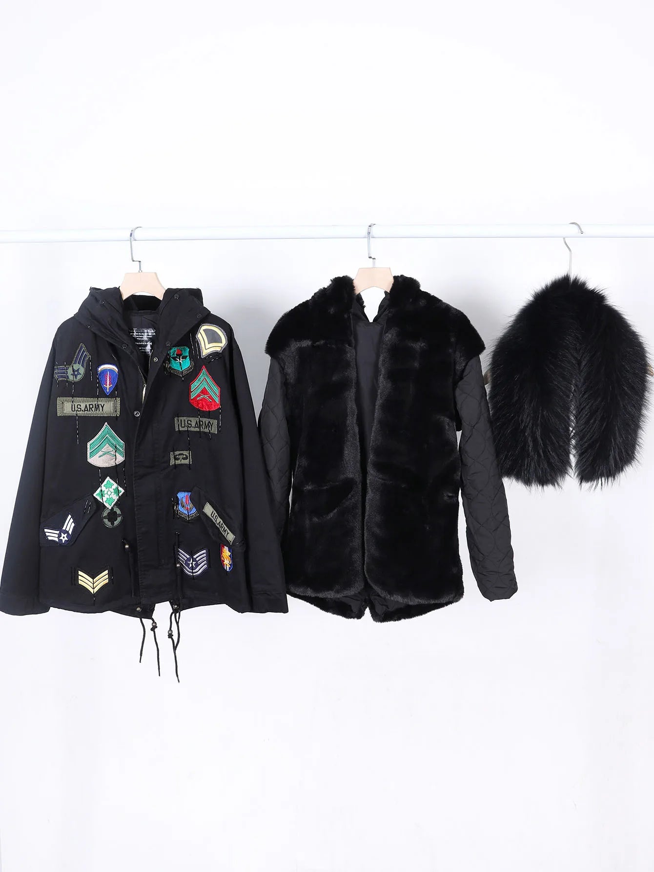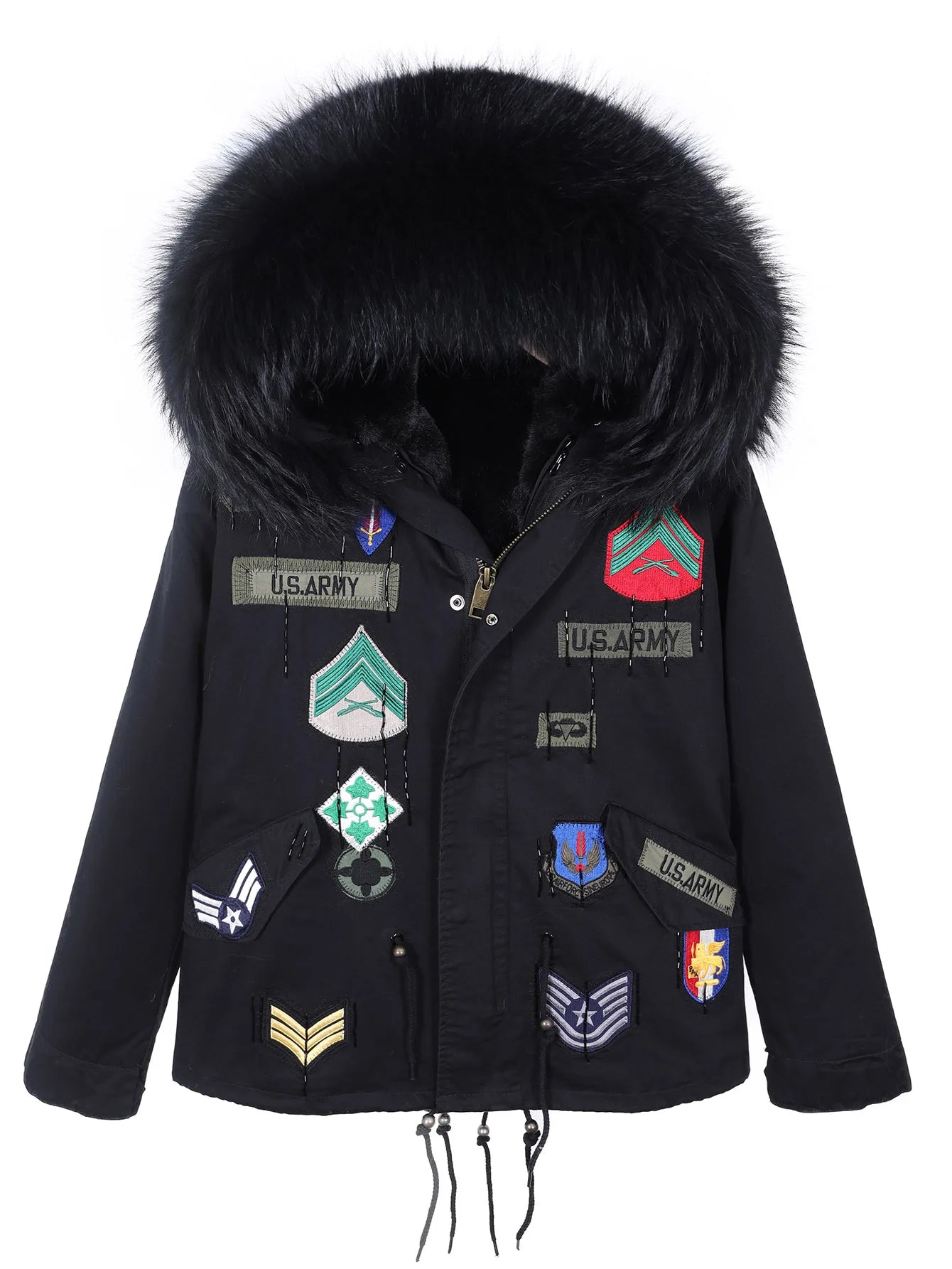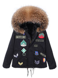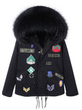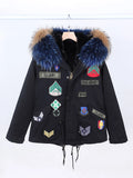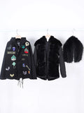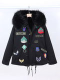 Women's Winter Parka Coat with Detachable Lining Long Sleeve Warm Cotton Jacket with Hood Embroidered Unisex Casual Outerwear
