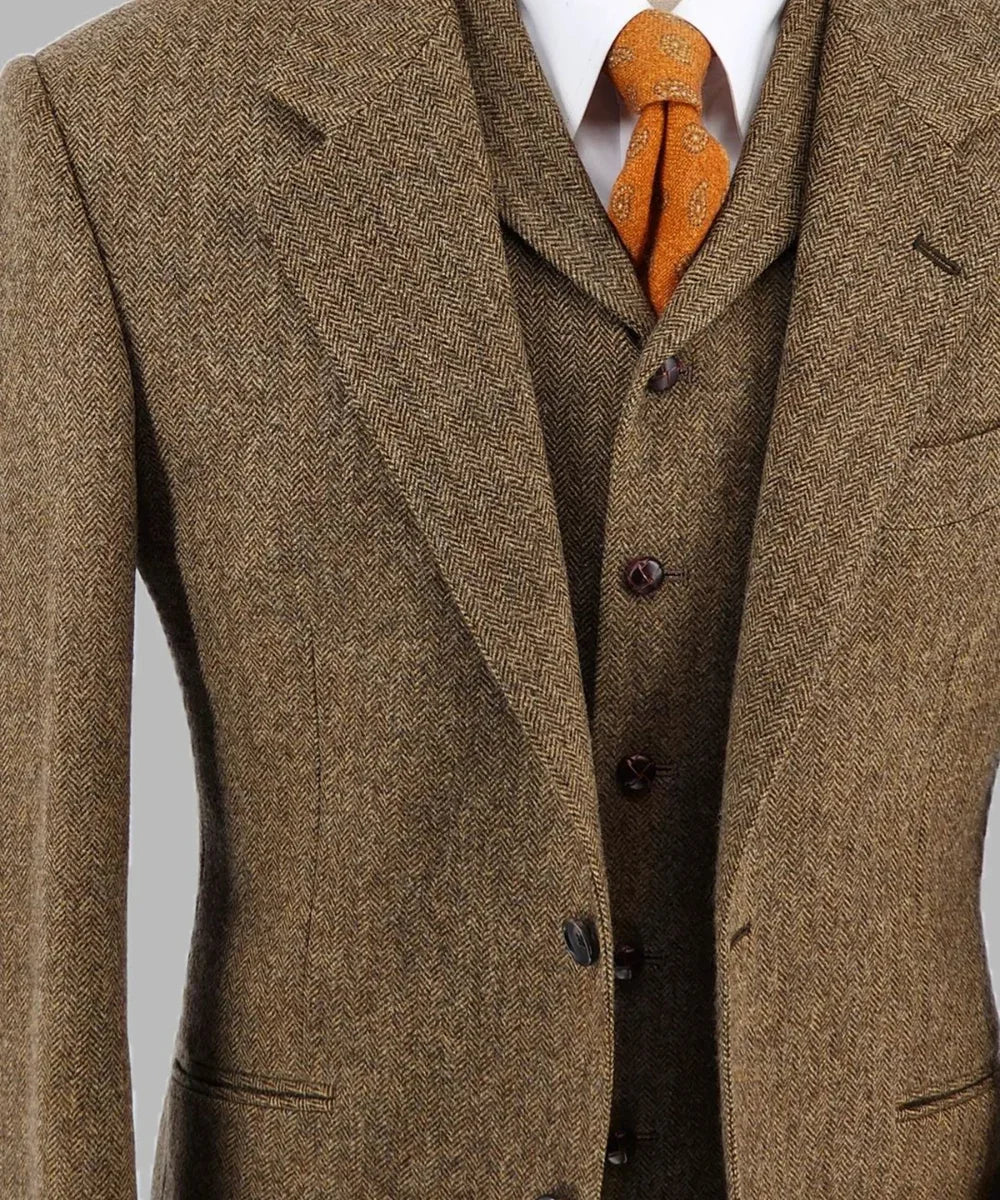 Woolen Men Suits Slim Fit Wedding Groom Wear Tuxedo 3 Pieces Notched Lapel Business Suit Jacket with Pants Vest Custom Made